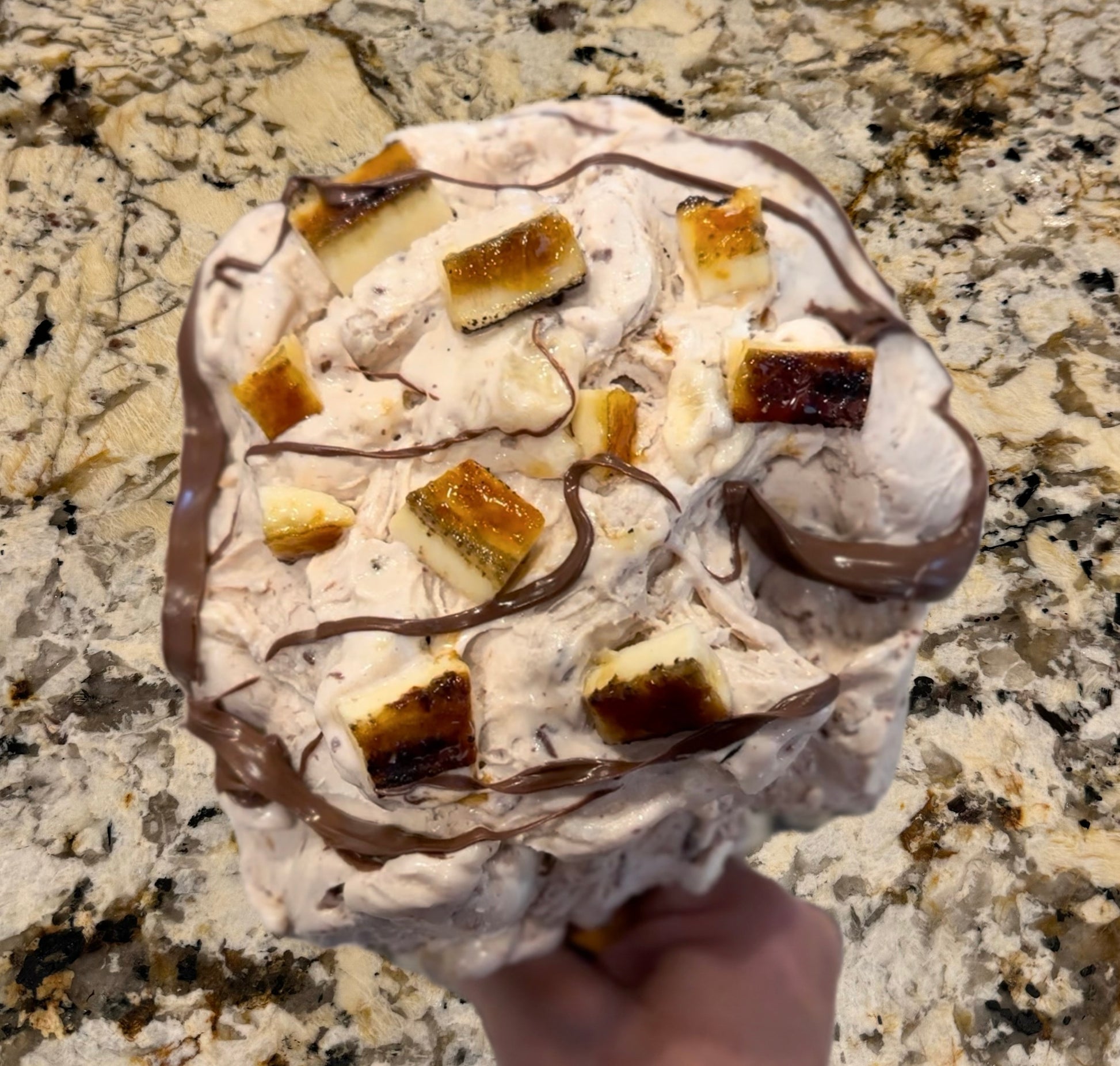 Caramelized banana with Nutella swirled into our cream base and Heath crumble for a nice little crunch. *contain nuts