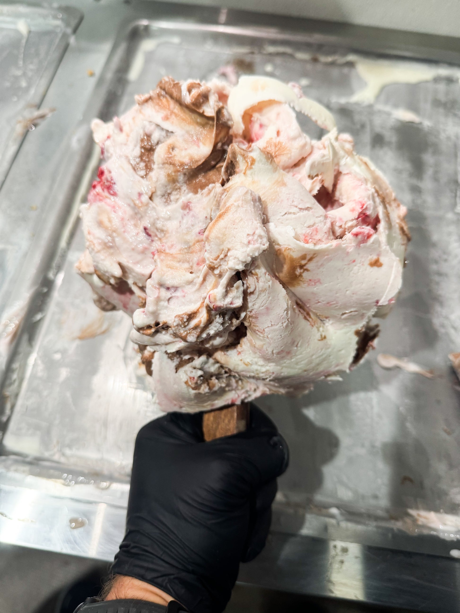 Our take on Neapolitan ice cream! Fresh strawberry and cream with our rich chocolate, swirled together to get that perfect blend of three flavors.